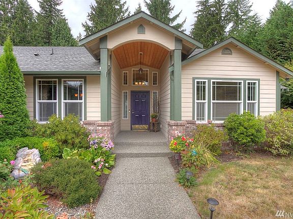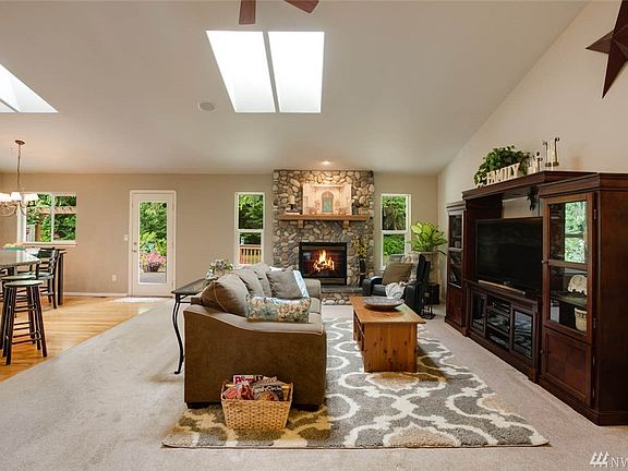 Open spaces, skylights & vaulted ceilings throughout compliment this single story Arlington home on a large 1/2 acre lot, adjoining acreage of protected land and trails. Highly sought after floor plan with open concept, well appointed kitchen with granite counters & bar seating. 4 sizable bedrooms, large bonus room with wet bar & fireplace. Entertain outside with a covered patio & spacious deck. Home wired for hot tub & generator. 3 car garage & RV parking makes this house the complete package.