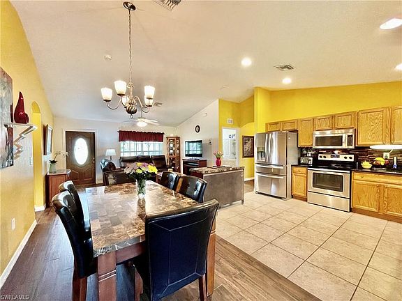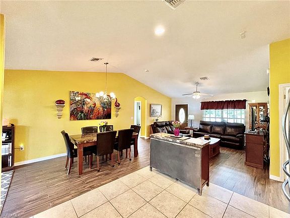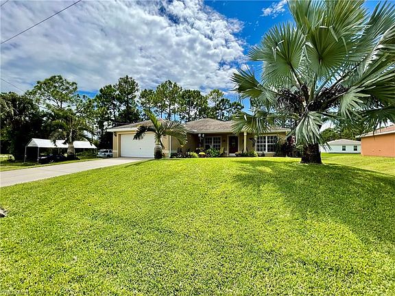 BEAUTIFULLY maintained & ready for new owners! Call today to schedule your private showing of this GORGEOUS concrete block home with 3 bdrms, 2 baths, 2 car garage, over 1300 sq ft under air and ... HALF-ACRE/CORNER LOT! Step through your front door & be greeted with the open concept great room that boasts porcelain wood-plank tile & soaring ceilings. Kitchen is complete with oak cabinetry, granite countertops, under-sink RO system, glass tile backsplash & stainless appliances. HUGE master suite with walk-in closet, double sinks with granite vanity, linen closet & oversized walk-in shower. A split plan, guests will enjoy the bath with large tub, granite vanity & oak cabinetry. Laundry with new washer/dryer, utility sink & extra shelving. Sliders in dining area open to the 20x12 screen enclosed/tiled lanai overlooking the FULLY FENCED BACKYARD with trees galore & 10x12 storage shed! You'll also appreciate the fenced, 20x20 extended tiled deck area with LIKE-NEW 6-PERSON SPA (9K new!)! Portable tent provides perfect protection for boat/toys. Beautifully landscaped with sprinkler system! Off Sunshine & Lee Blvds, you'll be close to a myriad of shopping & dining options. Time to MOVE!