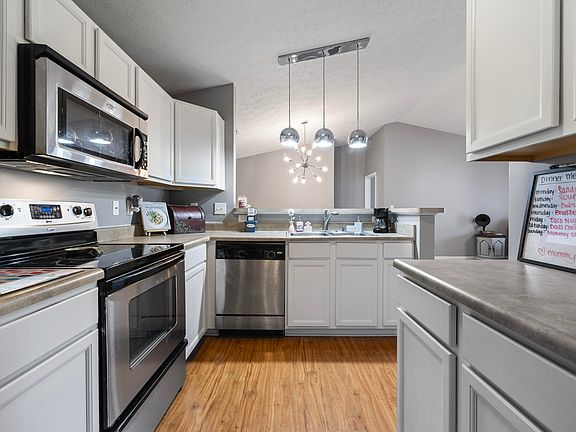 Come discover bright, airy open concept living in this well maintained 3rd floor condo with vaulted ceilings in the highly desirable community of Bradford Commons! The kitchen offers ample storage space for all your culinary needs with stainless steel appliances and a large breakfast bar that provides room for extra seating. Next to the kitchen, you'll find a connected laundry room, pantry, and great room with dining area featuring a corner electric fireplace & french doors that open to a newly installed/updated patio ~~~~~~~~~~ The primary bedroom offers a walk-in closet and a private ensuite bath with walk-in shower and double vanity. The additional full bathroom is just off the second bedroom with easy access to the primary living area. This condo offers a spacious third bonus room that's perfect for an office, den, playroom or whatever suits a new buyer's personal needs. All rooms are slightly larger than normal with large windows and vaulted ceilings ~~~~~~~~~~ There is all new interior paint throughout, along with new upgrades and repairs including a new garbage disposal installed, new exhaust fan in master bath, new seal around patio door, new AC condenser fan motor and dual run capacitor installed and the AC unit was serviced and recharged. The condo has a designated parking spot in front and several guest parking spaces ~~~~~~~~~~ Bradford Commons is an FHA approved community that allows pets with some restrictions on type/breed. Monthly HOA fee is 285/per month but maintenance includes all fees for unit's water, sewer, trash, landscaping, master insurance, and snow removal, as well as complete use and access to the clubhouse, swimming pool, and newly renovated fitness center
