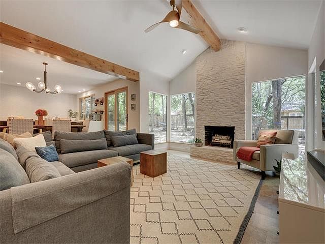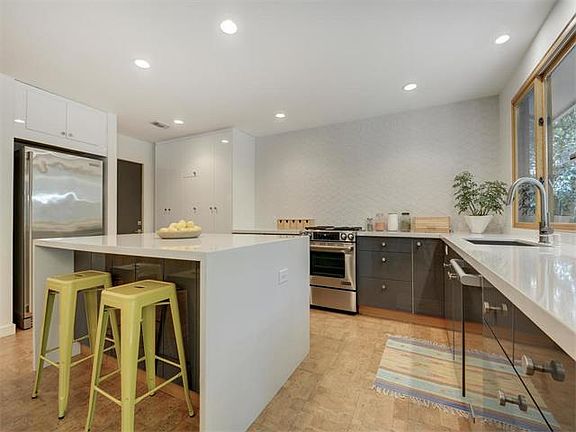 Remodeled home on a huge cul-de-sac lot within walking distance to Barton Creek. A modern open concept with new island kitchen, quartz counters and under counter freezer. NEW-Electrical system, windows, doors, lighting, fixtures, hardware & cork flooring. Sunken living with cathedral ceiling, level 5 texture, fireplace and a wall of windows. New vanities & quartz counters in baths and a barn door in master. Zero maintenance landscaping w/front & back yard sprinklers.