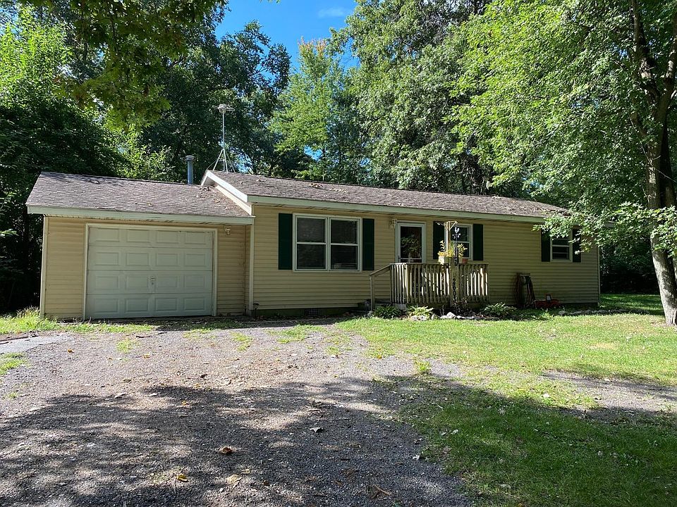 Perfectly situated on a tree-lined street, this 3 bedroom/1 bath ranch feels like home the moment you pull up. Step inside the welcoming living room that flows into the eat-in kitchen, complete with breakfast bar and patio doors that lead out back. Down the hall you'll find the bedrooms and a full bath, plus the spacious laundry room with access to the back yard. The one-car attached garage at the end of the long driveway provides parking plus ample storage. Out back is an 8x10 shed for more storage and a roomy 12x10 deck for relaxing or entertaining. And some of the 'big stuff' was already done for you: a new roof and vinyl siding in 2013, plus a new furnace in winter of 2021. Some TLC will go a long way with this one!