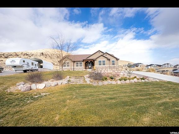 PRICE REDUCTION ALERT....HORSE PROPERTY with the most amazing views. Huge Yard with rolling hills. Sled on them in the winter and roll down them in the summer. KIDS LOVE THIS PLACE.. Located in the Ranches of Eagle Mountain. 5 bedroom 3.5 baths and its own workout room in the basement. Horse corrals on property making this place ready for you to take off and ride on the many trails that lead through the ranches. Home has been updated and looks amazing, New high end carpet, and a fireplace on each floor. Firepit in the back to enjoy the amazing sunsets or stars all night long. Home also boosts a hard to find .95 acre lot. Terraced yard that is fully landscaped and beautiful. Property is up on the hill giving it incredible views, it also backs Camp Williams property so you will only have deer for back yard neighbors. Please schedule your appointment today as this home won't last long... Home owner has drawn up plans for a barn and or shop/garage in the back of the property.