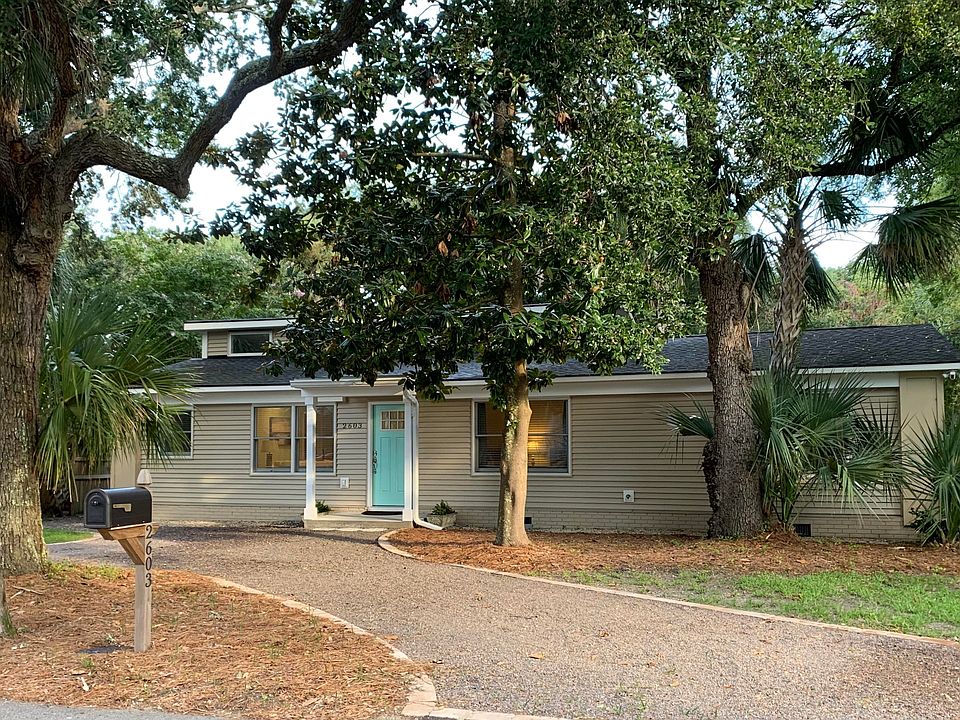Close to the Beach and the Recreation Center, This is the Lowest Price 4 Bedroom 3 Bath Cottage on the Island.A Circular Gravel Drive and Low Maintenance Landscaping Welcomes you to this Renovated House. New in the last 5 years: gas pack HVAC unit, windows on the main level, solid core doors, flooring, light fixtures, 3 modern all tiled bathrooms, stainless steel appliances, kitchen and bathroom cabinets. Vaulted Ceiling in Kitchen, Eat in area and Dining area.Elevated loft space with a light & an air vent (great for storage). All smooth ceilings. Low electricity bills. Privacy fence in large backyard. New Shed 8 x 12 with roll up door. Outdoor shower. Sound barrier rock insulation in bath, hallway & bedroom wall that backs up to Master Bedroom