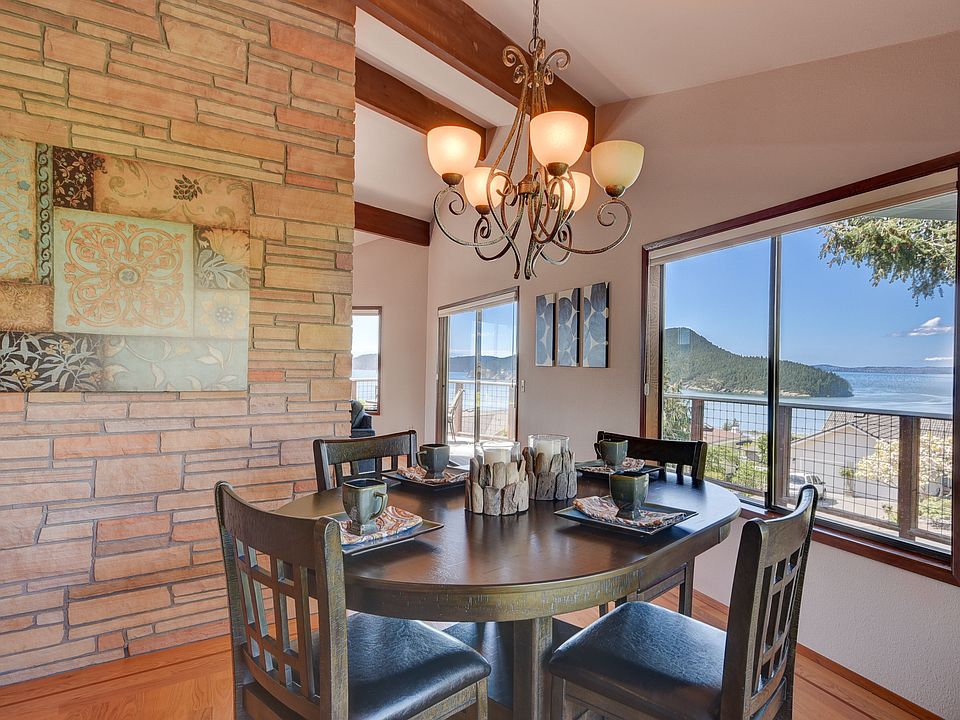 Sweeping front row views of Burrows Bay, the San Juan Islands & the Olympic Mountains! Architecturally designed w/ soaring ceilings & walls of windows to enjoy the stunning Pacific NW scenery & sunsets over the bay. This spectacular home features distinctive finishes, a gourmet kitchen, gleaming hardwood floors, & expansive ironwood deck to savor the views. Flexible floor plan w/ 2 Master Suites. Professionally designed landscaping, RV pkg, 600 sf garage w/ shop space & backs to a greenbelt .