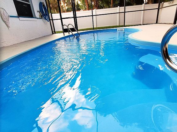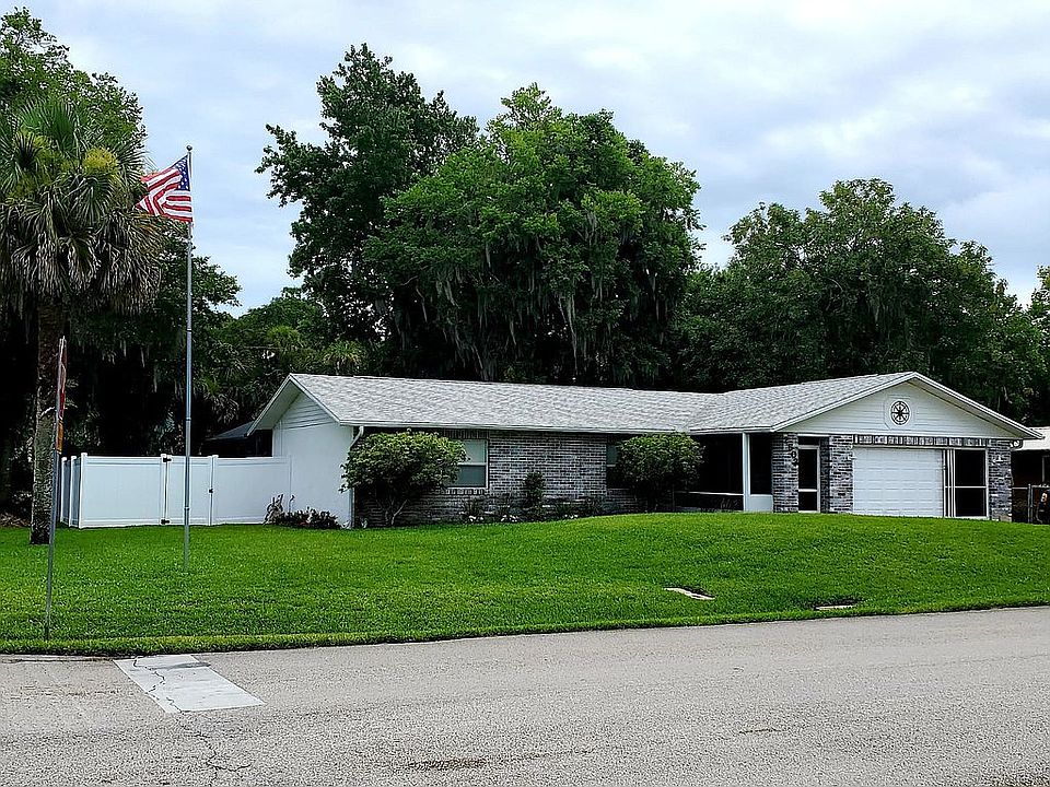 This beautiful 3 bedroom, 2 bath, 2 car garage home is situated on a spacious 3 lot corner, and boasts a refreshing in-ground pool with screen room. Built in 1989, this property has been a single family owned, well-maintained home that is centrally located just 5 miles from New Smyrna Beach and 2 miles from the Indian River. Upgrades include a brand new AC and heat installation with a 10 year warrantee for new buyer, new colonial panel interior doors with venetian bronze hardware, a granite kitchen countertop, and a remodel to most plumbing and elecrical fixtures. The lovely pool has been recently resurfaced and has a new motor and timer. A screened in Florida room is accessible from either the dining room, the master bedroom, or the pool and adds another 267 square feet to the home for entertaining. The well established lawn has a zoned sprinkler system for your convenience, and there is an aluminum shed on premises to store your gardening tools. Make an appointment today to view, and make this house your home!