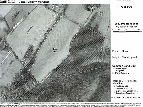 150 Acres m/l. Enjoy the privacy and seclusion of this 4 bedroom, 2 bath ranch home with a 2-car garage attached with a breezeway. The home has been updated within the last year with the hardwood floors sanded and refinished, other flooring has new vinyl plank other than the basement bath and utility rooms, all interior walls and trim has been repainted, new lighting has been added in the living room and garage, all outlets and switches have been replaced to white to match the paint colors, garbage disposal was installed, cabinetry was added along one wall in the basement family room only needs a countertop added, new storm door on back door, new key code locks on both doors, septic tank was pumped and inspected with new outlet baffle added in Nov 2021, radon mitigation system was installed Dec 2021, Cinch Home Services Complete Home Plan home warranty in place good through Dec 2, 2021 will transfer to the new owner. Property includes 150 acres m/l with 80 acres m/l broke ground currently planted to beans (growing crop is negotiable) remainder of acres are homestead and timber. There are 2 creeks running through the property providing great habitat for wildlife. The deer and turkey are abundant making for great hunting potential. The farm is currently under a hunting lease through May of 2023 which is possibly negotiable. The farm has been put into the Maryland Agricultural Land Preservation Program. There is an older home on the property as well the log cabin was probably built in the 1700's and added onto in the 1800's. This property has great income potential with the crop land, hunting lease, and logging. A large pen has been added in the back yard to contain pets or other animals. Current owners are licensed real estate agents in the state of Kansas.