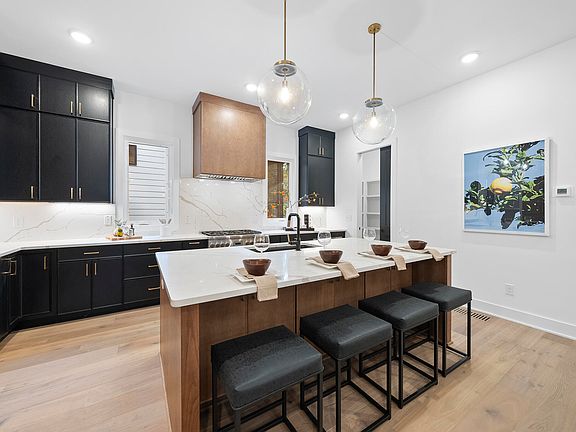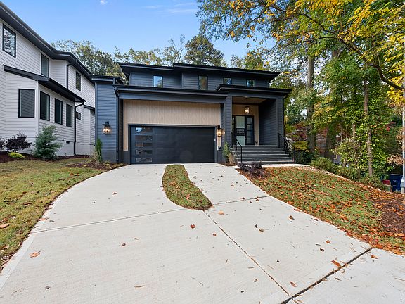 This custom contemporary home, built by Copper Builders and designed by McMillan Architecture, is a modern gem situated inside the beltline of Raleigh, a highly desirable area. Just steps from The Village District's vibrant shopping, dining, and green spaces, this home embodies the best of Raleigh living. The 2-car garage offers convenient commuting, with easy access to Downtown Raleigh, I-40/440, North Hills, RDU Airport, Dorothea Dix Park and more. Inside, the open-concept floor plan flows seamlessly from the living area to a screened rear porch, featuring stacked sliding doors and a custom gas log fireplace for year-round indoor-outdoor living. The kitchen is a true showpiece, with custom floor-to-ceiling painted cabinets, high-end Thermador appliances, and an expansive dining area that accommodates a table for 12 or more. The main-level owner's suite exudes a spa-like ambiance, with a floating dual vanity, floor-to-ceiling modern tile, a shower bench, and a rain shower head. Private studies on each floor provide abundant workspace, while the upstairs includes a spacious recreation room with a wet bar and three additional bedrooms, offering plenty of room for comfort and entertainment. Don't miss this rare opportunity to own a masterpiece in one of Raleigh's most sought-after neighborhoods and enjoy an unparalleled lifestyle. Use 817 Rosemont Ave for GPS