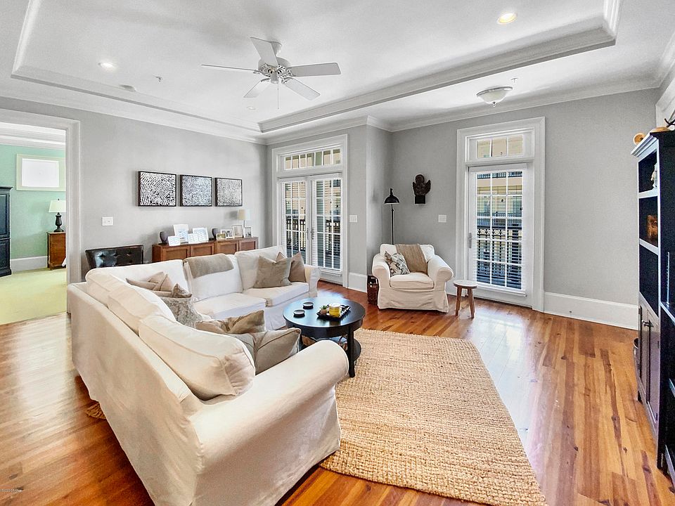 This gorgeous Waterhaven condo opens to a spacious hardwood floored great room with columns, beautiful crown molding and tray ceilings. Double French doors bathe the great room with natural light. A designated dining area and lengthy kitchen island accommodate plenty of seating. The master suite also opens to the covered porch. There are two guest rooms with roomy closets and a shared full bath, as well as a half bath off the hallway for guests. The laundry room adjoins the kitchen and has extra cabinets there for storage or pantry. There is an elevator for owner use, just steps from the back door. There is no need to climb the stairs! A brand new HVAC system has just been installed (inside and exterior) and the entire home has been very well maintained.