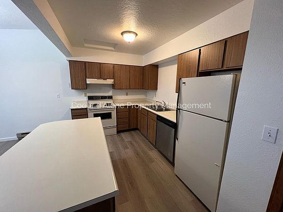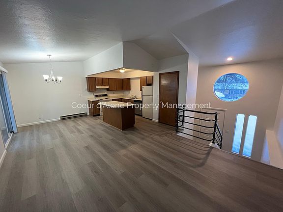 Recently updated 2 bed, 1 bath townhouse in Coeur D' Alene. Brand new flooring and freshly painted interior. Single car attached garage, small storage shed, fenced backyard w/ sprinklers. All appliances included: Washer and dryer, fridge, electric range, and dishwasher. Tenant pays $70 flat fee w/s/g each month. NO PETS. NON-SMOKING.
