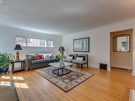 Dreamy Grant Park home in prime location. Original oak floors sing throughout main level. Large living room w/fireplace & French doors to formal dining. Kitchen features pantry & sweet nook. 1 bed & spacious bath on main, plus den that opens to serene backyard. Grand primary suite w/fireplace, sitting area, skylight & updated bath, & bed & bonus space up. Basement w/potential office/storage. Fenced backyard oasis w/covered dining & entertaining spaces. Close to Grant Park, schools & shops! [Home Energy Score = 3. HES Report at https://rpt.greenbuildingregistry.com/hes/OR10205027]