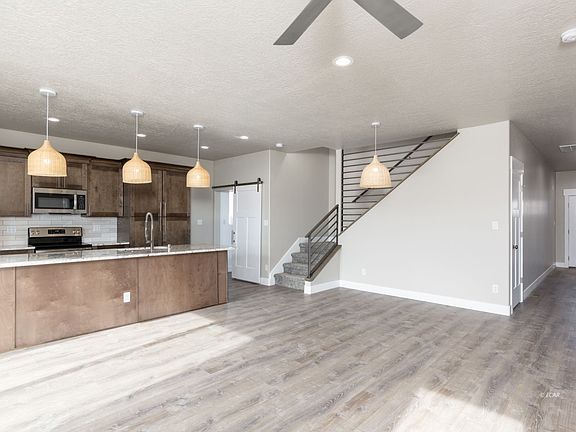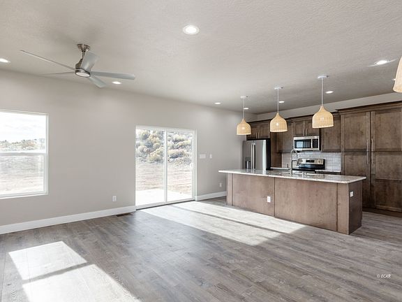 This is the Pearl Peak 3 floor plan from Koinonia Construction. Set on larger lot over 14,000 sq ft with 13' + side yard off the front garage corner opening to over 30' off the rear corner of the house. The two level home has 5 bedrooms, 3 bathrooms. Main floor has 3 bedrooms, 2 bathrooms, laundry & great room. Upstairs has 2 oversized bedrooms and large bonus room. Standard finishes include painted soft close cabinetry in, with upgraded granite counter tops throughout. Luxury vinyl tile, carpet and ceramic tile flooring. Double vanity in the primary suite with a tiled in shower and large walk in closet. 10x10 patio outside rear slider door. Stucco, masonry and vinyl siding exterior finishes. Vinyl fence included on 3 sides to include a 4' man gate on house side and a 12' gate on side yard. Large side yard/RV parking. Owner is also licensed Nevada Real Estate Agent.