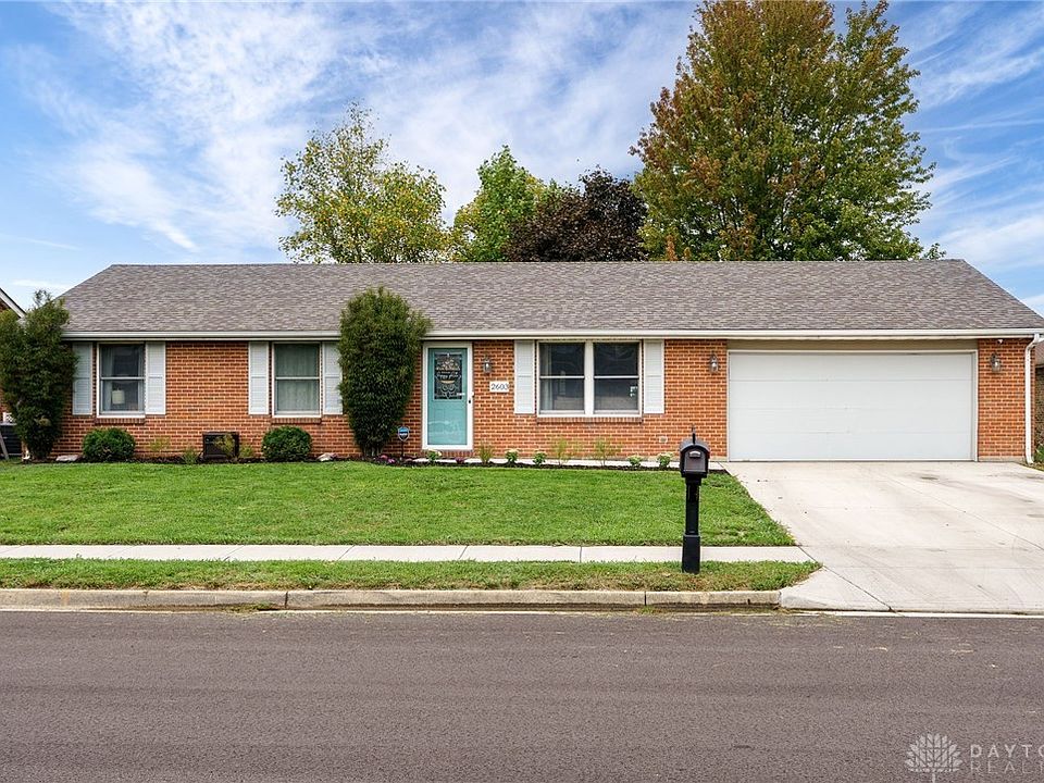 Owners pride shines throughout this Kings Chapel ranch ready for your immediate admiration. Outside, its attractive brick exterior is enhanced by brand new roofing, a decorative glass entry door & newly concreted front porch and double driveway. Fresh landscape adds a vibrant punch to its already impressive curb appeal earning this one a “10” from the curb! You’ll love the layout showcasing woodgrain laminate flooring, statement lighting, natural light filled rooms and over 1,200 SQFT of comfortable living space. Bring the sectional as this oversized living room is perfect for larger furniture arrangements and relaxing in uncrowded comfort. Features continue in the KINGSIZED kitchen wrapped in oak cabinets w/under cabinet lighting, stainless appliances, plenty of counter space and a large eat in space. A dedicated laundry room is conveniently tucked away w/bonus cabinetry great for laundry essentials. Down the hall you’ll discover 3 freshly painted bedrooms each with new luxury vinyl plank flooring, updated base trim, modern lighting and new closet doors. Modern farmhouse vibes embrace the primary suite w/a sliding track door introducing a nicely updated personal bath. Updates repeat in the ceramic floored guest bath w/updated fixtures. Efficiency exists w/the HVAC system updated circa 2020. Enjoy the great outdoors w/indoor comfort in the enclosed patio complete w/ceramic flooring and quick access to dual concrete patios & Hot Spring spa for the ultimate in outdoor relaxation. 6 ft poly vinyl fencing frames the rear yard with mature trees and a garden house for ease in stowing lawn equipment. Selective buyers can feel confident with this one! Exceptionally clean, well maintained and ideal for those looking for quality without compromise. Stop looking and start living with 2603 Saint Andrews Drive in beautiful Troy OH!