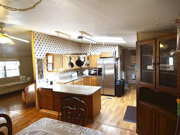 Experience country living in this well maintained manufactured home on acreage. 3 bedroom, 2 bath. Has recent metal roof on both home and garage. All bedrooms have new carpet. Entire interior recently professionally repainted. Garage has office-work area in addition to auto storage area. Fenced garden spot. Prior owner had generator with switch installed in case of power outage. Home has large fenced back yard for pets. Listing agent is related to seller.