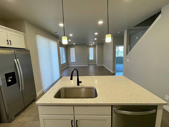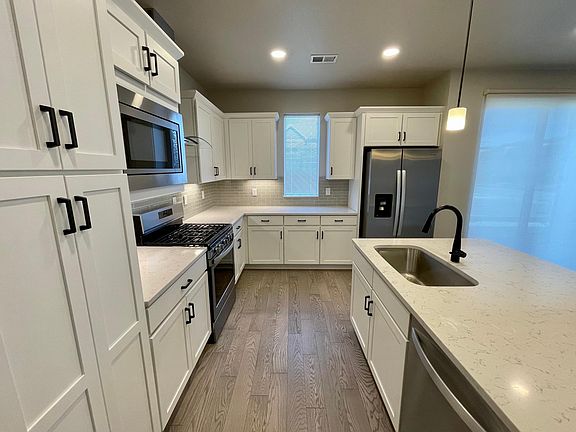 Great Opportunity! 2019-built, stylish large townhome with luxury features and finishes in a convenient location! Great Room is a bright open concept with huge windows, both front and side patios, and vinyl plank flooring. Kitchen boasts beautiful quartz countertops, island breakfast bar, subway tile backsplash, oven hood, soft-close cabinets, stainless steel appliances. Plenty of storage with upgraded cabinetry. Master bedroom on main level with en-suite bathroom. Master bath has quartz countertops, subway tile shower, walk-in closet w/ intelligent organization, & additional linen closet. A/C! Washer/Dryer included in laundry room. Over-sized 2 car alley-load garage with extra storage space. 2 beautiful new community swimming pools! Available now! Call or message for a showing! Owner pays sewer and water. Exterior maintenance handled by HOA. Low maintenance living! Tenants responsible for other utilities.