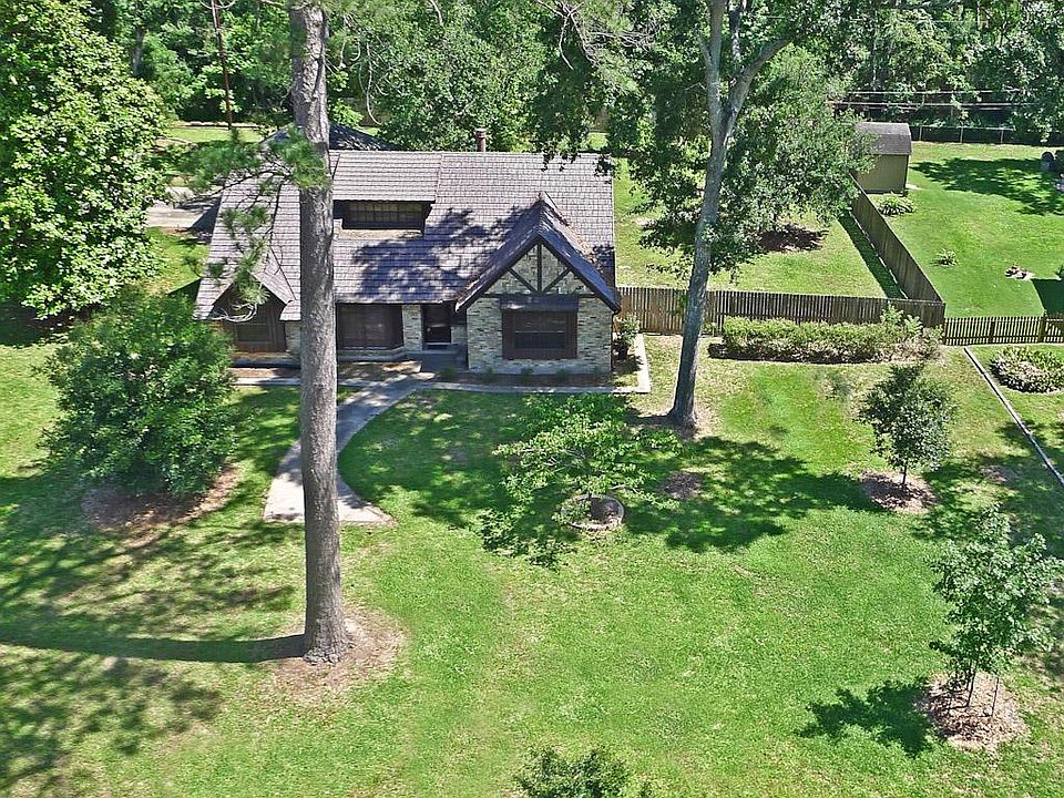 SPACIOUS 1.5 STORY HOME SITS ON 2.5 acres*PECAN TREE SHADED BACKYARD IS VIEWED FROM GORGEOUS WOOD PANELLED GREAT ROOM W/WALL OF WINDOWS*THE HOME FEATURES 3 BDRMS/2 FULL BATHS DOWN & 4th BEDROOM OR GAMEROOM W/FULL BATH UP would make nice media room or quarters. Fresh interior paint! New a/c coil & condenser in 2008! Gas cooktop! Separate garden tub & shower! Tiled ktchn/bkfst! Wood floors in family room. Large storage shed! Lifetome aluminum roof!