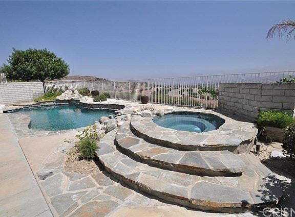 STEVENSON RANCH POOL HOME WITH A MAGNIFICENT, PANORAMIC VIEW OF THE VALLEY!! Now ready for viewing! Terrific location and a private yard with views forever. Pool, spa, and patio cover, and nice hardscape. Open floorplan with full bedroom and bathroom downstairs and 4 bedrooms upstairs (3 upstairs bedrooms have ATTACHED BATHS). Deck off master to enjoy the view. Great Blue Ribbon and top-rated schools. Contact Owner by email, and Owner will provide information regarding viewing schedule.