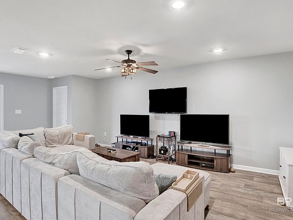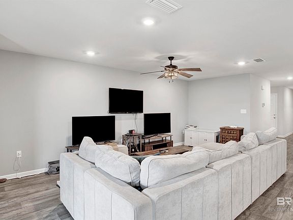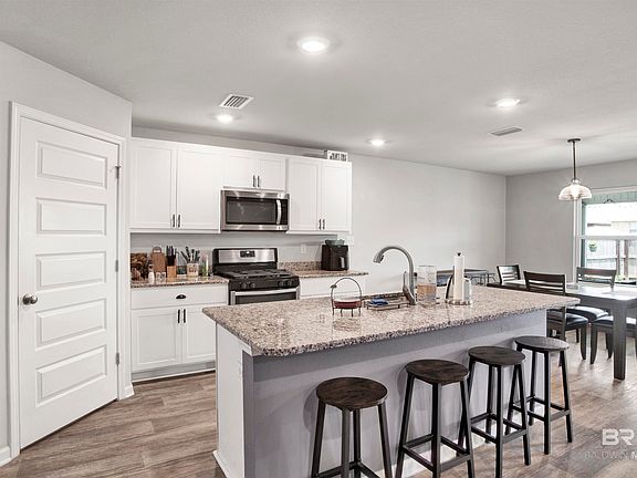 Looking for a fantastic location in the heart of Daphne? Golf Fortified home just 4 years old and backs up to the common area. Open concept with vinyl plank floors in the common areas. Large kitchen Island with bar seating. Granite countertops throughout the home. Gas range with stainless appliances and undermount sink. Split floor plan with four bedrooms. Primary bedroom located on the rear of home with double vanities in bathroom, 5' Shower and walk in closets. Home is wired for Smart Home technology. Double Garage, Spacious screened back porch overlooking fenced yard. Neighborhood has resort style pool and 2 lakes. Located just 15 minutes south of I-10 and 15 minutes north of Fairhope! Buyer to verify all information during due diligence.