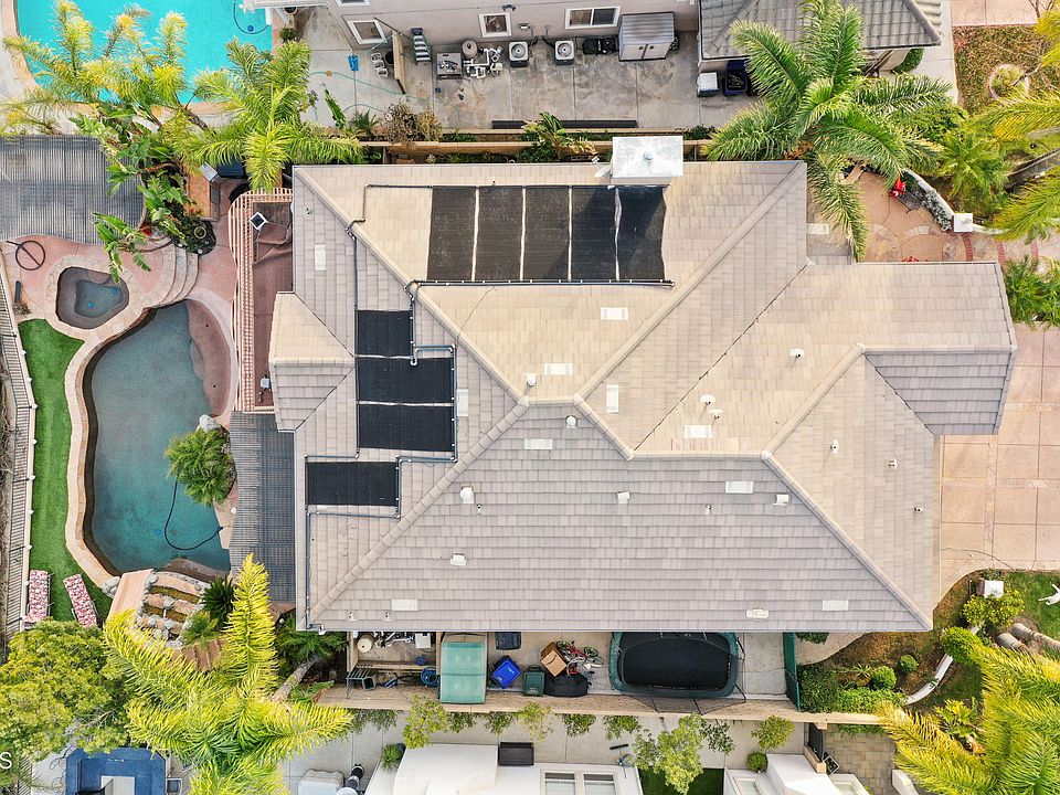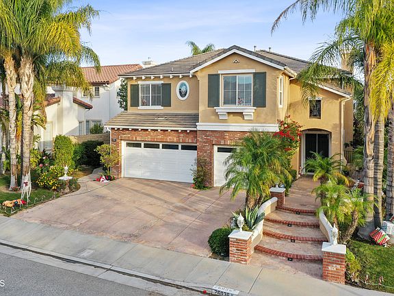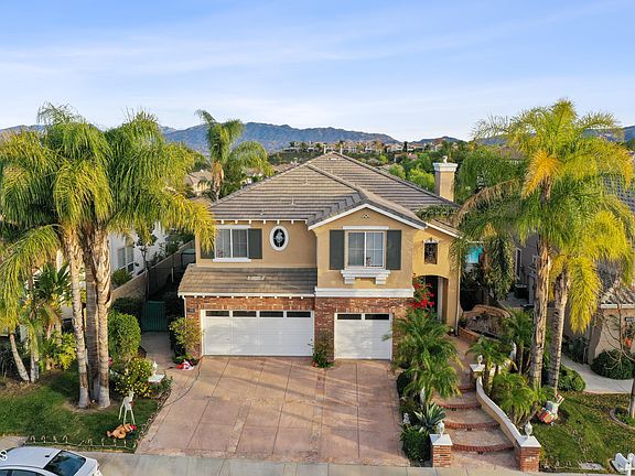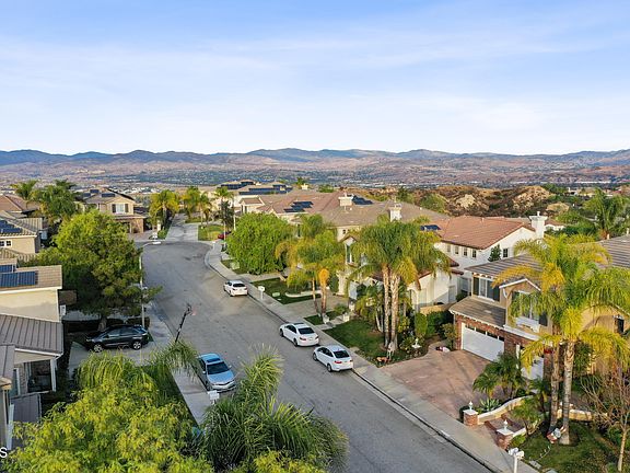 Come tour this beautiful home at the top of Stevenson Ranch. Highlighted by the resort like backyard with panoramic views, pebble tech pool with custom slide, waterfall, spa, and firepit. There are two stamped concrete patios and a custom, built-in, exterior kitchen with grill, refrigerator, sink, and bar seating. This is a perfect home for families with the blue ribbon Stevenson Ranch school system. When you walk up to the property you are greeted by a serene entry waterfall. Sit by the gas fireplace and enjoy a book in the living room. Other interior highlights include a custom chandelier in the living room, a large formal dining room, and a family room that has a built in entertainment center complete with fireplace, built in bar area, and a wine cooler. The kitchen is complete with granite counters & large granite island perfect for entertaining, stainless steel appliances and pantry. The downstairs bedroom has distressed wood flooring and it's own private bathroom. When you walk upstairs there is a great loft entertainment area. The master retreat exits to a nice balcony overlooking the pool and waterfall as well as the panoramic view. The master bathroom also includes a jacuzzi tub, separate shower, his and her sinks & two walk in closets.