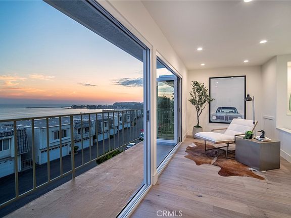 second-floor primary suite balcony overlooking the Pacific Ocean, beaches and Dana Point’s harbor.