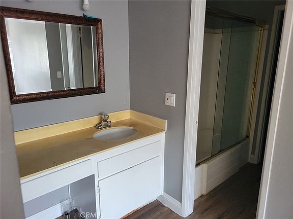 Clean Aliso Villas plan 1 with all newer vinyl flooring and has been recently painted. Kitchen features new counter tops, a newer gas range & oven, as well as a newer hood fan. The kitchen sink and garbage disposal have also been replaced. This floorplan as a large living room, with an attached dining area. There is a large viewing deck off the living room. There are no carpets in the entire unit, all vinyl flooring.