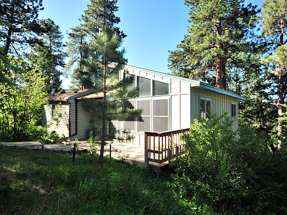 ADJACENT PARCEL with darling cabin and a workshop available for additional $60,000.00 = $325,000 (26059 Edelweiss Circle > 2nd Tax ID #040347), Main House has a Wonderful Southern Exposure , Mature Pines, Quiet County maintained Road, Unique Opportunity, Large Master Suite, Beautiful "Music Room" has a high vaulted ceiling, wood floor, and a lot of glass can also be a generous sized second bedroom, rec/family room,studio, or?? Small pass through study, Wood Stove, Updated Kitchen, Green House and abundant Storage under the main house, low maintenance yard, Sun Deck off the dining area & master suite, black water holding tank + grey water leaching field, Hike in Bell Park, Basement is great for dry storage - exterior access only - shelving & lighting, Skylights and Extensive glass brings the outdoors in! CO Home Warranty included. (Purchase the Cabin for a swell Guest Cottage & additional parking > Furnishings and Antique wood burning cook stove to be included & add'l 2/10 acre).