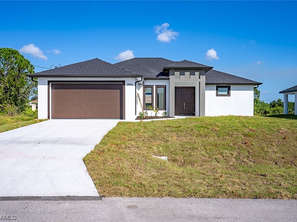 As you step inside, you'll notice the elegant touches that define this property. The kitchen is a true focal point, featuring exquisite quartz countertops that provide both, beauty and durability. The sleek stainless steel appliances not only enhance the kitchen's aesthetics but also offer modern conveniences for cooking and entertaining. The interior design incorporates a touch of wood accents throughout, adding warmth and character to the living spaces. These wooden elements create a harmonious balance with the contemporary finishes, giving the home a unique and inviting atmosphere. One of the standout features of this property is the abundance of natural light, thanks to strategically placed windows and thoughtful design. This ensures a bright and welcoming ambiance in every room. Additionally, ceiling fans have been thoughtfully installed to enhance comfort and energy efficiency. The layout is functional and spacious, with three well-appointed bedrooms. The den adds versatility, serving as a home office or guest room. The home location in the SW of Lehigh Acres provides convenient access to local amenities, schools, and parks, making it a wonderful place to call home.