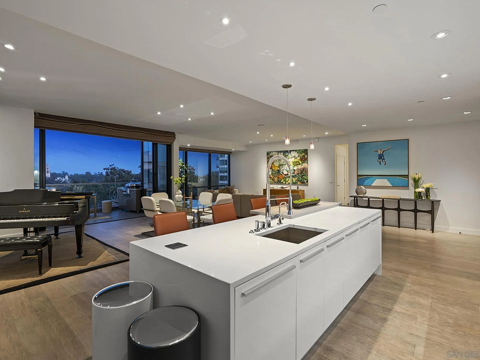 Some residences are built to impress. Residence 801 was created to inspire. Located on the Northeast corner of the 8th floor of Bankers Hill’s most distinctive boutique address, 41West, this residence opens wide beneath 10-foot ceilings and retracting NanaWalls that frame San Diego’s most celebrated views: Balboa Park’s California Tower, the buzz of Bankers Hill and even a sliver of the Pacific from your private corner terrace. The arrival is dramatic, double doors open into a living space grand enough for a grand piano, with morning light streams across the room. Every detail elevates daily life: Vantage-controlled lighting that sets the mood with a single touch, automatic shades that vanish into silence, and a concealed 110-inch screen that transforms the room into a private cinema. The “music room” speaks to the current owner’s love of vinyl, yet its flexibility invites reinvention, a library, study, or hidden pantry. The kitchen is a dream, outfitted with Miele appliances (steam oven, five-burner gas cooktop, built-in wine cabinet), Italian cabinetry, and filtered water. Retreat to the primary suite, where park views, a spa-inspired bath with soaking tub and oversized shower, and a custom walk-in closet redefine comfort. A second bedroom is equally impressive and offers its own park-framed views. *See Supplement for More Details* Only four homes share this floor, and just 41 in the building, true boutique living. The lobby makes a statement, the hallways a gallery, and there is true magic outside with the cultural heartbeat of Balboa Park, Bankers Hill’s dining and café scene, and a neighborhood steeped in history yet alive with energy. 2 side by side parking spaces, storage unit and EV charging station. Residence 801 at 41West — as rare as it is refined. MARKETING VIDEO IN VIRTUAL LINK!