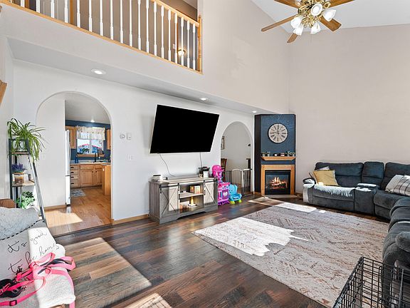 Call or Text Listing Agent - Lori DeVries - The Real Estate Center of Spearfish - 605.641.7529 for more information. This lovely updated home is on a corner lot close to shopping, and restaurants and is convenient for commuting. Updated in 2023/2024 includes new roof, siding, gutters & downspouts, deck paint, LVP flooring in living area, bedrooms and basement family room, much interior paint, new furnace & A/C, some new windows, new stainless steel fridge and dishwasher and the partially fenced in yard is now completely fenced in. You will notice the high vaulted ceiling as you walk in the front door allowing in ample natural light, along with the warm fireplace and arched doorways for added elegance. Enjoy the large primary bedroom suite with a tub and shower in the bathroom. The tasteful paint and flooring complement the beautiful wood floors in the kitchen and dining areas. The basement is partially finished with a nice " get away" family room and plenty of additional storage. An existing egress window makes it easy to add a 5th bedroom if desired. Buyer is responsible for verifying all information on this MLS document.