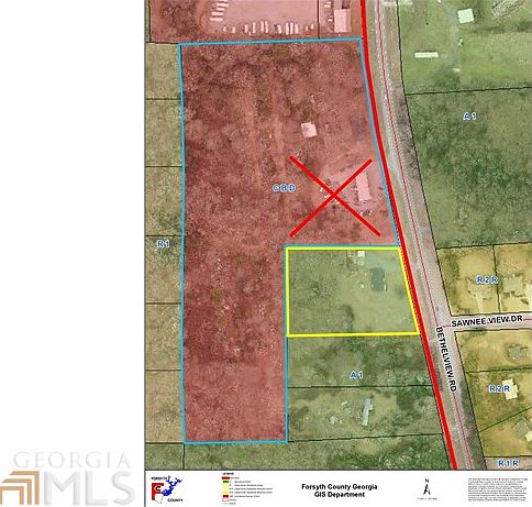 10 Acres Zoned CBD. Excellent Development Opportunity in Forsyth County Georgia. The site is just south (1/8th of a mile) from SR 20, Canton Hwy. on the west side of Bethelview Rd. and has approximately 475 of road frontage which is being widened to a 4 lane with center median and sidewalk. Water, Electric on site. Resides within Forsyth County Sewer Services which is in the area. There is an additional 3 acre tract that abuts this tract with an additional 288 +/- of road frontage. 2650 Bethelview Road listed for $555,000. 03/03/16