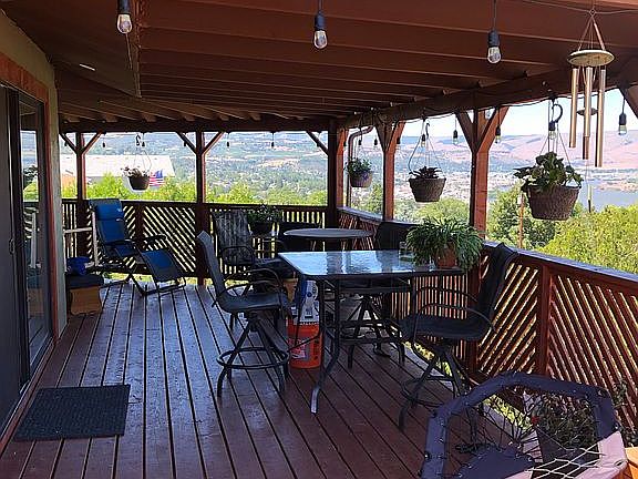 Unique octagon home with Columbia River & Gorge views. Large main floor room with fireplace has two 12' sliding glass doors exiting to the new 800 sq ft partially covered deck. HUGE master on the main includes walk-in closet, sliding glass door and private deck. European shower in the master bath. Laundry room, gourmet kitchen and walk-in pantry also on main. Daylight basement (previously used as a rental) contains separate entrance, recreation room, fireplace, second Master Suite with jetted tub, fully-equipped kitchen, and an additional bedroom with walk-in closet. All windows/doors rated energy efficient, new in 2017. Ductless heat/air system installed in 2018. Large gas on-demand hot water heater and gas stove installed in 2020. Full-service ( 50 amp) RV pad provides potential additional rental income. 2-car garage and shop (with ALL utilities) with mother-in-law apt space upstairs with private deck. Large lot, ample off street parking, and room for a garden and pets.