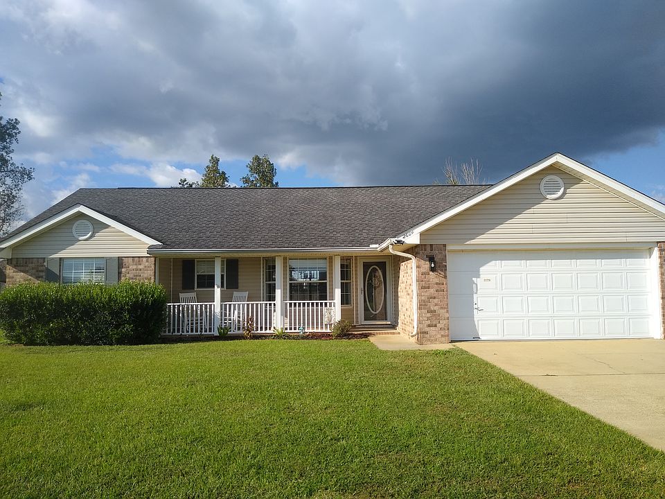 Freshley updated, three bedroom, two bath single family home in the desirable Ashford Park division/neighborhood. This home has three good sized bedrooms, new paint, luxury plank flooring throughout, granite in the kitchen and in both bathrooms, stainless steel appliances, and new lighting. It boosts a great layout that has the main bedroom on one side of the house and the two guest rooms on the other. The main bedroom has a barn door, walk in closet, and an attached bathroom with standing shower. The toilet is separate for privacy. This home is open concept with the kitchen overlooking the spacious great room. Both have vaulted ceilings. The great room has enough space to put a desk if you need an office. The kitchen has room for a table in front of a big bay window providing ample natural light. The laundry room has shelving and a nook for hats or bookbags. The backyard is oversized and fenced in for privacy. GRASS CUTTING IS INCLUDED! Sit on the covered front porch with your coffee or relax on the cement patio in the back yard. You can park your car in the 2-car attached garage or use it has a workshop. This home is close to shopping, dining, OWA, and Foley schools. It is also only a 20-to-25-minute drive to the beautiful Alabama beaches. Please call to inquire or schedule a showing. Renter is responsible for all electric, internet, utilities, water, trash etc. Owner is responsible for HAO and taxes. Minimum of $100.00 repair is to be done by the renter. Owner is responsible for repairs over that amount. There is a laundry hookup available. Renter must maintain flower beds. One year minimum lease. More lease details to come.