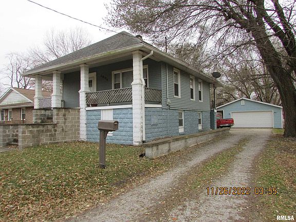 4 bedrooms, 2 baths, one on each level, large 4 car garage with a half acre of land between the two lots! Informal dining room offers a bay window to look out at the back yard, open kitchen, tons of storage and a separate laundry room. The garage offers plenty of space for the hobbyist along with a covered area for outside entertaining. Property sold as is.
