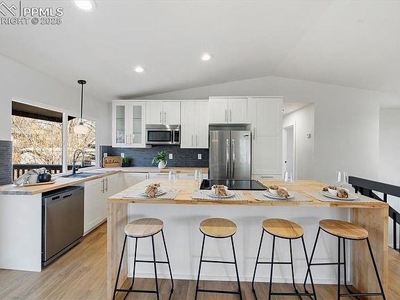 Welcome home to this beautifully remodeled 4-bedroom, 2-bathroom split-level retreat, perfectly blending modern elegance with natural elements. Nestled on a huge lot with mature trees, this home offers privacy and tranquility while being centrally located with easy access to Academy Blvd and Powers Blvd—making commuting and everyday conveniences a breeze. From the moment you enter, you’ll be captivated by the thoughtfully curated organic modern aesthetic, enhanced by unique, modern lighting fixtures that serve as both artistic statements and functional focal points. Brand-new windows bathe the space in natural light, highlighting the seamless blend of warm wood tones, sleek finishes, and clean lines. Two cozy fireplaces—one on each level—offer the perfect setting for relaxing evenings, while the spacious and functional split-level layout provides room for both gathering and retreat. The updated kitchen boasts modern cabinetry, natural basalt backsplash, butcher block countertops, and a seamless connection to the open living and dining areas. Outside, the expansive backyard is a rare find—ideal for entertaining, gardening, or simply enjoying Colorado’s four seasons. Located in D11 school district, this home is a must-see for those seeking modern comfort, timeless style, and unbeatable convenience. Don’t miss your chance to own this one-of-a-kind gem—schedule your private showing today! 4 Bedrooms | 2 Bathrooms | Split-Level | Huge Lot | 2 Fireplaces | New Windows | D11 Schools