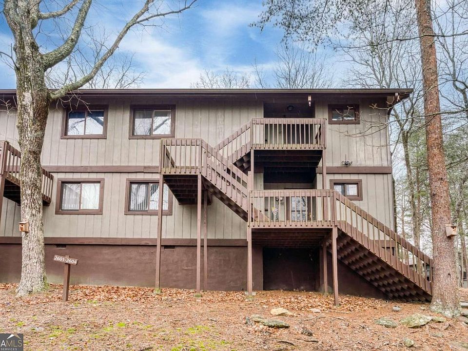 Back on market after buyer's financing fell through! Amazing value in Lake Arrowhead! This spectacular condo nestled in the hills of Lake Arrowhead. This 2 bedroom home has been well maintained and boasts updated flooring and fixtures, as well as neutral paint throughout. Enter from the covered stoop into an open floor plan living space that flows between the kitchen and family room. The kitchen features black white cabinets, updated fixtures, beautiful new granite countertops, a modern tile backsplash, and view into the family room. Enjoy breakfast bar seating at the counter between the family room and the kitchen. Head into the family room where you will notice a open and airy feel within the spacious room featuring three sets of glass patio doors providing beautiful natural light and nature views, as well as a cozy stone fireplace. The family room has access to two outdoor living spaces with both a side porch and back deck where you will enjoy treelined views. Just off the main living area you will also find a storage closet and laundry closet. Continue on where you will find two bedrooms and two full baths. The master bedroom is spacious, offers a nice sized closet and en suite bath. The master bath offers a shower/tub combo as well as a large counter space, and updated fixtures. The secondary bedroom is equally spacious and has wonderful natural light. The second full bath also features a tub/shower combo, white cabinets, and updated fixtures. Enjoy a quiet, peaceful neighborhood with beautiful views and quick access to community amenities. Located in the Fairway Oaks neighborhood of the highly sought after Lake Arrowhead community. Lake Arrowhead is a gated community with Golf Course, Lake, Marina, 2 pools, park, clubhouse with restaurant, hiking trails, fishing, tennis, Pickle Ball & more!