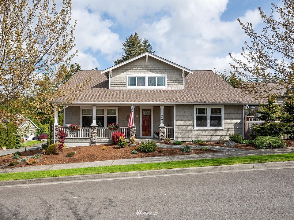 Fir Crest home built by Strandberg with many upgrades. This 3 bd 2.5 bath home has main level living including primary bedroom. Two additional bedrooms, den, and bathroom upstairs. Enjoy your fully fenced back yard with easy maintenance landscaping, irrigation, fruit trees, extended patio with covered porch. Cherry hardwood floors, custom built in cabinets & shelving, crown molding, skylights, all new appliances, Hunter Douglas blinds, and newer carpet. Large oversized garage with heavy duty storage cabinets included with home. Anacortes trail access at end of street. Come and see this amazing home today!