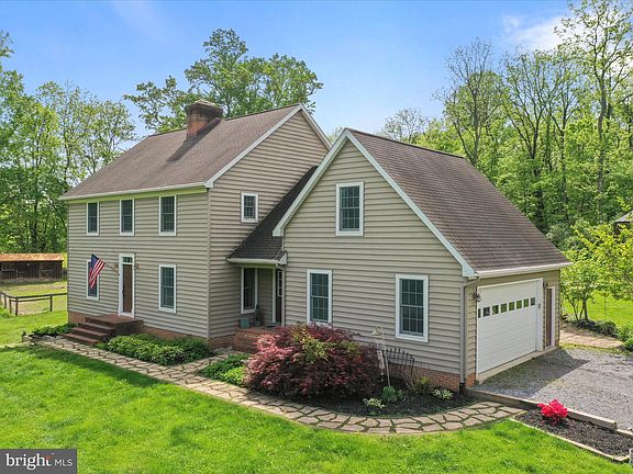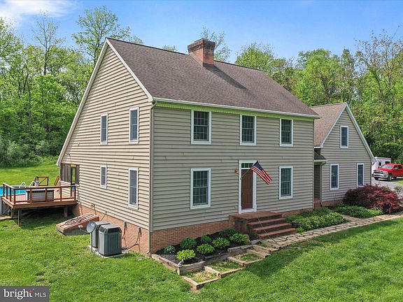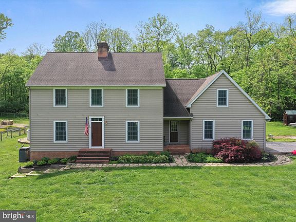 Charming Saltbox Colonial Farmette on 22.54 Acres. A private retreat with endless possibilities! Welcome to your dream countryside escape! Nestled on over 22 picturesque acres, this classic Saltbox Colonial-style home offers the perfect blend of traditional charm, modern comforts, and farmette living. Boasting 4 spacious bedrooms and 2.5 baths, this inviting residence features stunning Brazilian cherry hardwood floors on the main level, where you'll find a cozy living room with a brick wood-burning fireplace, a separate formal dining room, and a beautifully appointed country kitchen complete with granite countertops, apron-front sink, stainless steel appliances, island, display cabinetry, and a cheerful breakfast nook. A flexible main-level room offers endless possibilities for a den, playroom, or guest space, while a large laundry/mudroom and half bath add everyday convenience. Upstairs, the generous primary suite offers dual closets—including a walk-in—and a roomy bath with a 6-foot jetted tub / shower, and double-sink granite vanity. Three additional large bedrooms, a full hall bath, and ample storage complete the upper level. The unfinished basement offers future expansion potential and features a high-efficiency Jøtul woodstove for added warmth and charm. Outdoor living shines here with a screened rear porch, gazebo, above-ground pool with deck, patio, and fire pit. The grounds include a unique corn crib converted into a cozy sitting area with a koi pond, three versatile sheds, raised garden beds, and private pond. Animal lovers will appreciate the fenced two-stall barn, run-in shed, and invisible fencing with collar. This custom built home is surrouded by natural beauty, partially wooded areas, abundant wildlife, and backs to 100 acres of protected farmland. All just minutes from the Virginia state line—perfect for commuters seeking serene living with easy access to amenities. This one-of-a-kind property offers the perfect backdrop for your country lifestyle!