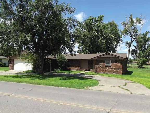This home was built in 1965 and has had significant improvements since that time. An addition of a large, living area gives a most spacious look to the house. There is a bar area in the kitchen for snacking and a dining room area close by for family meals. As you enter the second living area there is a walkway to the garage. Upon entry to the garage is a door beyond which is a stairway down to the safe room which is finished, making it much more convenient for the owners to reach safety if necessary. As you open the door in the garage to access the safe room you will notice a small, built-in safe for your precious belongings. The attached garage is 611 SF (+/-) and behind the main house is a detached, shop/garage that is 720 SF (+/-). The two A/C units are fairly new and the well is 25' deep. The fireplace has an insert. The property has been recently surveyed and contains one acre.