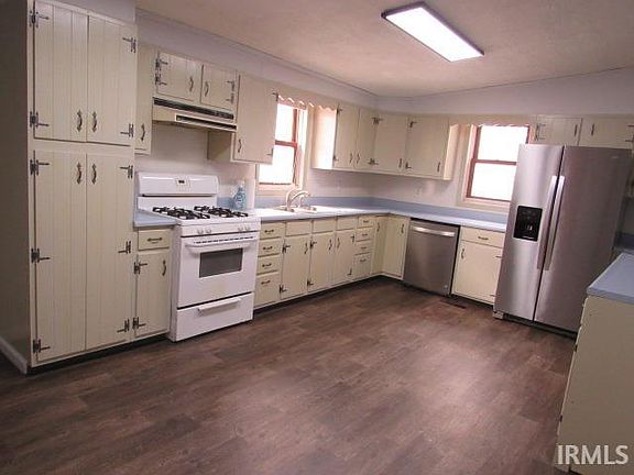 Need a lot of space without a big price tag? This 5 bedroom 2 bath home may be your answer. This charming home offers lots of character with various built-ins and and an XL kitchen with new stainless refrigerator and dishwasher. There was a new roof installed on the house in 2020. Lots of updated vinyl and laminate flooring in many rooms. Second washer/dryer hookup in bedroom. Fenced backyard has a concrete block garage and a small patio with grilling gazebo. Includes: Refrigerator, range/oven, dishwasher, washer, dryer, all window treatments, 2 portable air conditioners, grilling gazebo, dehumidifier. Selling AS-IS.