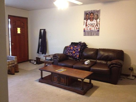 3 BR 1 bath home available for rent June 1. Home has newly remodeled bathroom storage room 1 car garage across the street from Marlatt Elementary west of the KSU stadium and large backyard. 975/month plus deposit. Pets negotiable. Tenant is responsible for gas, electric, water, trash, lawn care and snow removal.