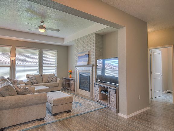 Welcome home to this beautiful single story 3 bedroom 3 car garage home located in the desirable Mariposa Community. The open floor plan has several upgrades, Ceramic wood Plank tile, granite in kitchen and bathrooms, Maple cabinetry, Freestanding gas range, and a fireplace! Frameless shower in Master bath with raised vanities and all appliances convey!!!
