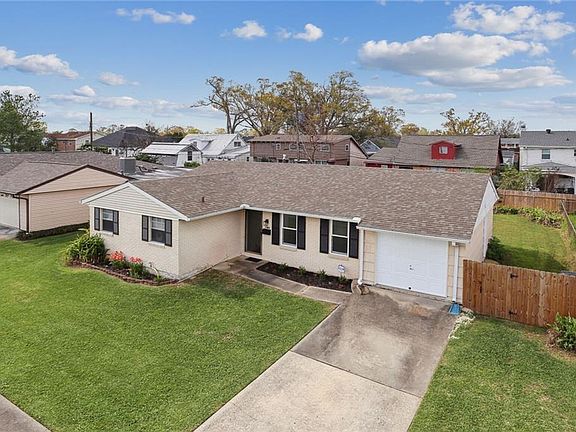 Charming move-in ready 3 bed, 2 bath home in great location- walking distance to Lafreniere Park. New roof in 2022, new HVAC system in 2023, new light fixtures, fresh paint throughout, & updated bathrooms including new tubs, new toilet, & new vanity in hall bath. Large primary suite with private bath. Huge back yard with room for rear yard access. Garage with ample storage room. Convenient Metairie location near tons of shops & restaurants. 2 min from I-10. X Flood Zone with LOW flood ins = $686/yr