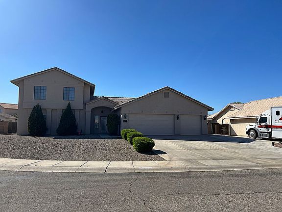Luxurious and upgraded, this 5 bedroom, 3 full bath home of nearly 2800 sq. ft. rests on a .24 acre lot on a peaceful cul-de-sac. Entering through the front door you will notice a spacious living room with a large sliding glass door leading to the covered patio area. The expansive backyard features a ramada with a built in 10 burner grill, a 10’ x 16’ lofted shed and no maintenance artificial grass and landscape gravel. From the backyard you can enter back into the home through the family room, living room or garage. Stainless steel appliances (refrigerator included) can be found in the kitchen. Just off the kitchen is the large formal dining room with plenty of natural lighting and room for guests. Near the fireplace in the family room, you will notice the built-in entertainment system which includes a surround sound speaker system. Whole home audio system allows music to be played throughout the home and backyard all controlled from your phone or Alexa. Ceramic tile in the kitchen and bathrooms and hand scraped laminate flooring throughout the rest of the home. No carpet! Large master bedroom features walk-in closet with custom closet system. The master bathroom includes double sinks, a jetted bathtub, and a separate shower. Oversized 3 car garage features recessed lighting, a water softener and is plumbed for a utility sink. RV gate, 50A service available for spa or RV. No HOA and a five minute drive to Ft Huachuca. Too much to list!