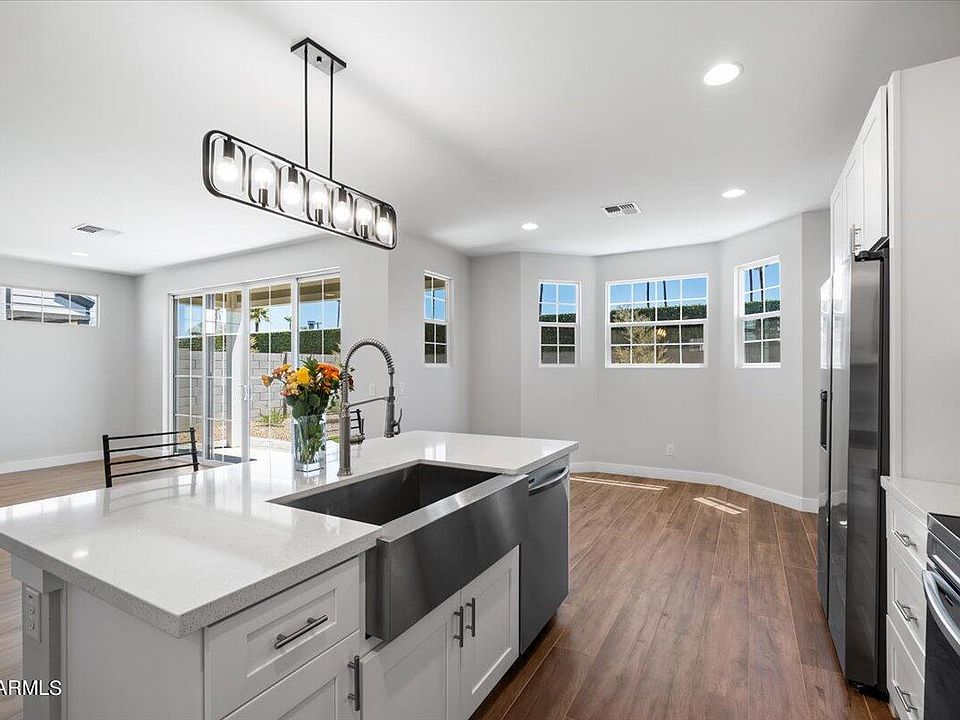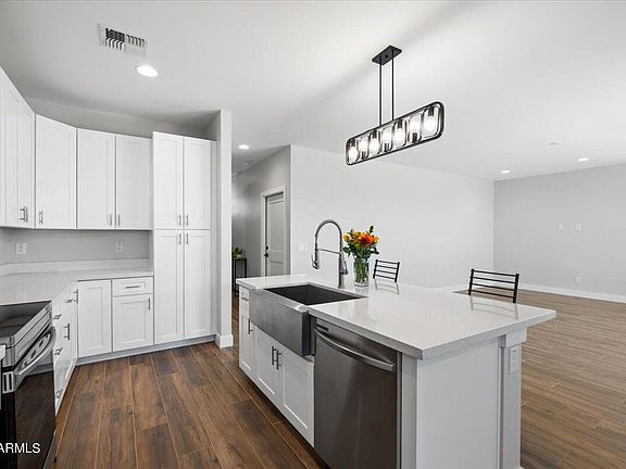 Contemporary home in pristine condition, just 1.5 months young!. With 3 bedrooms and 2.5 bathrooms, this residence offers a cozy retreat. The wood-like tile flooring and high vaulted ceilings downstairs create an inviting ambiance, while plush carpeting upstairs adds comfort. The kitchen boasts quartz countertops, while the tankless water heaters and foam insulation ensure efficiency. Enjoy a versatile loft space and the luxurious master bath's separate shower and tub. The massive sliding doors open to a private outdoor patio, seamlessly blending indoor and outdoor living. Experience the perfect combination of elegance and relaxation in this thoughtfully designed home.
