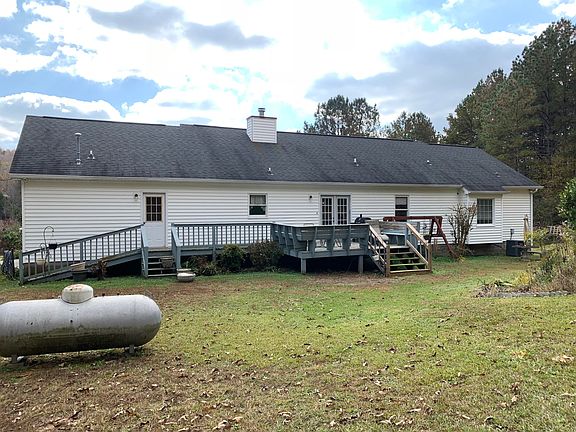 Lot of home for the price. Nice 3 bedroom, 2 bath home with a 2 car garage on 1 acre with a full length covered porch perfect for sitting and enjoying the views, out building and a back deck for entertaining. Architectural shingle roof less than 10 yrs. old, HVAC 3 yrs old. Master suite with Garden tub and separate shower. Perfect for Family or starter home