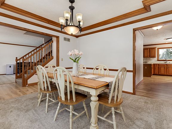 Absolutely stunning 5-bedroom, 3.5-bathroom home located in the desirable Eagle Ridge Subdivision. Impeccably maintained and beautifully presented. This home boasts a spacious kitchen with a generously sized pantry, perfect for all your culinary needs. The living room, adorned with elegant French doors, flows seamlessly into the family room, where a striking fireplace with built-in features creates a cozy ambiance. Entertaining is a delight with the expansive dining room, and the convenience of main floor laundry adds a practical touch. The master suite is a true retreat, offering a full bathroom complete with a relaxing garden tub, stylish double sinks and a large walk-in closet with built-in shelving. The lower level is fully finished, providing an expansive additional family room, a private bedroom, and another full bathroom. Recent updates abound, including new Anderson windows and garage doors, ensuring both energy efficiency and curb appeal. Important infrastructure upgrades include a new sump pump, HVAC system, and water heater, all replaced in 2020 for your peace of mind. The roof was replaced in 2017. New stainless steel appliances in 2017, harmonizing perfectly with the overall design. The washer and dryer, also updated in 2017, add to the modern conveniences this home offers. Every detail has been considered, even down to the new toilets and updated flooring throughout the main and second levels in 2020. In sum, this home is a true gem, combining tasteful updates, meticulous maintenance, and a thoughtful layout that accommodates every aspect of comfortable living. Don't miss the opportunity to make this exquisite property your new home sweet home! **Seller providing a $5,000 paint allowance**