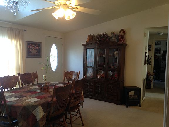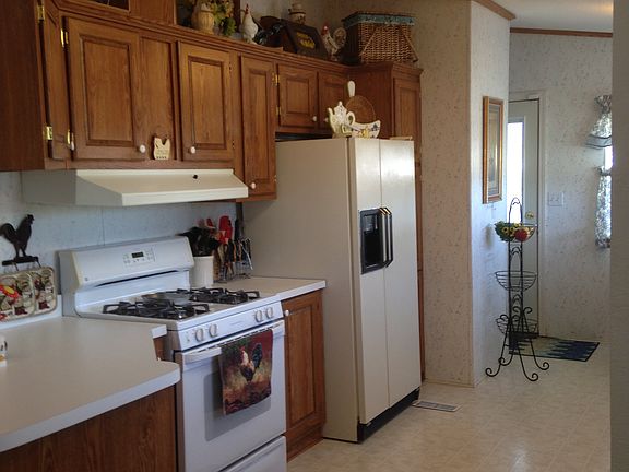 This home is Picture Perfect. Freshly updated and landscaped, this home is ready for your family. Large Great Room area with ceiling fans, kitchen is well designed lots of counter space and cabinets and even a darling breakfast nook, manufactured in 1992 with drywall, 1,352 sf on a permanent foundation system and ready for financing. Split wing floor plan with 3 bedrooms, 1.75 bath - 3rd bedroom has a slider which opens up to the enclosed porch. 22'x18' garage, 2 carports, RV hookups and lots of room for RVs. Ceiling fans throughout, mirrored closet doors, enclosed porch, water softener, ADT alarm system, new driveway, dual pac with a/c, plus window evap cooler in living room, vaulted ceilings. Propane tank is owned. Nice landscaping with low maintenance. Walking distance to restaurants, plaza, park. Simply Lovely.