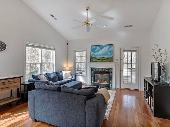 This modern open floorplan end unit home offers the epitome of convenience in Forest Lakes South, boasting rarely available one-level, maintenance-free living. Vaulted ceilings grace the great room, allowing natural light to illuminate the space, while a gas fireplace provides warmth and ambiance, all while overlooking a tranquil common area and woods. Indulge in the view and fresh air from the screened porch, a perfect retreat. The home is ready for immediate occupancy, with hardwood floors throughout the living areas, newly installed gleaming white quartz counters, and an undermount sink in the kitchen, along with new carpet in the bedrooms and fresh paint throughout. Forest Lakes provides an array of amenities and convenience, including miles of paved and natural trails, a pool, clubhouse, fitness center, tennis courts, lakes, sports fields, and more. Additionally, residents are just minutes away from the Hollymead Town Center, offering grocery stores, coffee shops, restaurants, and only a few minutes to the airport.