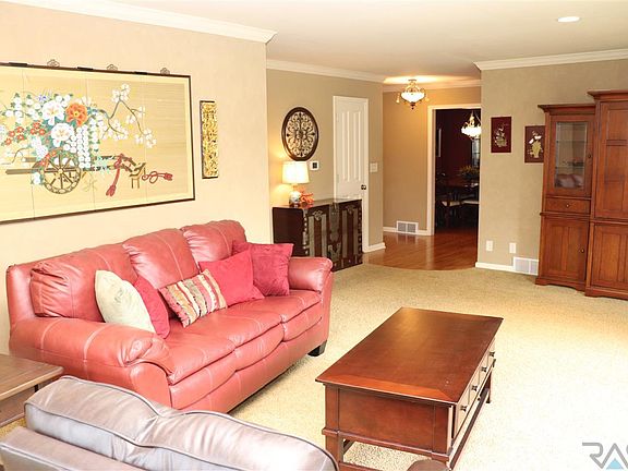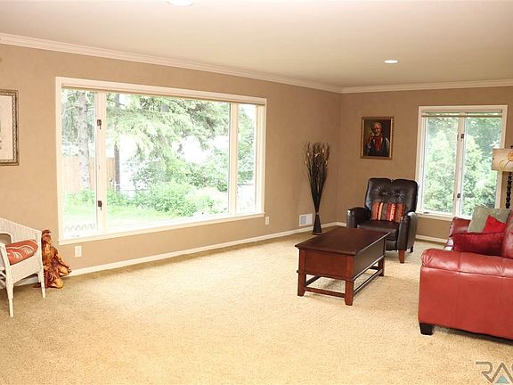 Spacious rambler situated on a quiet one-block-long-street. Perfectly located in south central Sioux Falls with convenience to most everything! Live just on the main floor with a handy floor laundry room, and expand into the finished lower level when needed. Beautiful new kitchen with custom cabinets, center island, and casual eating area is open to a great room with fireplace. Formal dining and living rooms are great for entertaining. 2 generous-size bedrooms on main floor with 2 full baths, and 2 more bedrooms and a full bath in lower level for a total of 4 bedrooms, 3 full baths, 3 living areas, and 3348 square feet of perfectly finished living plus more unfinished storage. 2 car garage. Beautiful backyard with a covered east-facing patio which is perfectly shaded for this time of year. Gracious front covered porch. Truly a rare find!