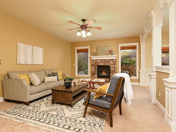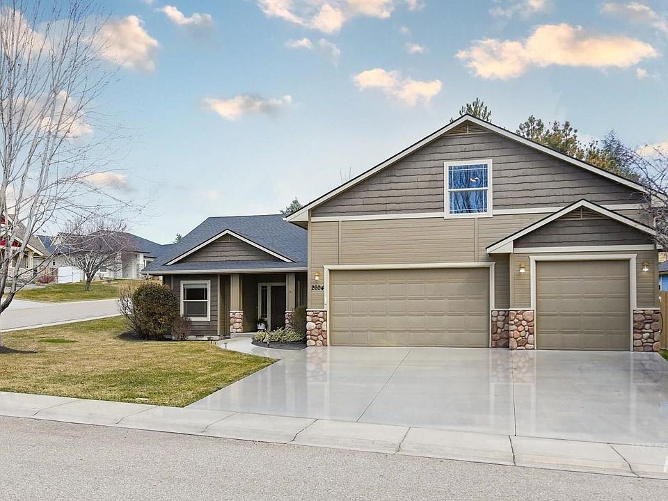 Welcome to this lovely home on a spacious corner 1/4 acre lot in South Nampa. A former Parade of Home boasting quality millwork, coffered ceilings, wainscoting, and crown molding, along with a charming stone gas fireplace. An abundance of oversized windows, a split bedroom floor plan with the option for a 5th bedroom/office, & main level owner’s suite with patio access & private ensuite bathroom. The open kitchen includes new refinished hardwood floors, center island & dining area looking out to the secluded backyard. The sun-lit front room can serve as an office or extra bedroom. Upstairs, a large room with full bathroom. The backyard is a lush, low-maintenance oasis w/ mature foliage, plus a side yard for optional grass area, a dog run, or storage. Highlights include an oversized 3-car garage, ample corner parking, & close proximity to Lake Lowell, dining, groceries, healthcare facilities, & the Nampa Rec Center. Enjoy the best of both comfort and convenience in this exceptional home.