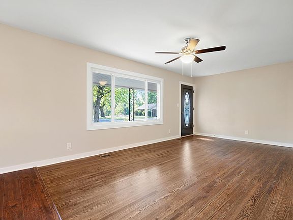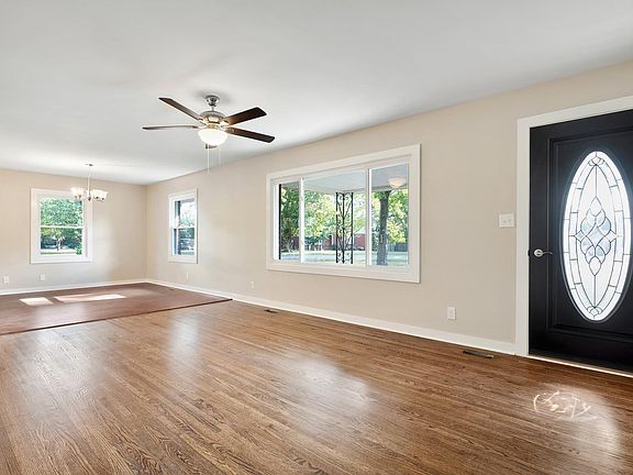 Nice treed, corner lot with a large front porch. House had undergone a rather large remodel, including refinishing the hardwood floor in living room, and 3 bedrooms, new laminate flooring in kitchen and dining, new tile in upstairs bath, new cabinets with a large eat at island added and kitchen appliances. A bath was added in the basement making for a nice rec room area or mancave. New paint throughout. Owner/Agent